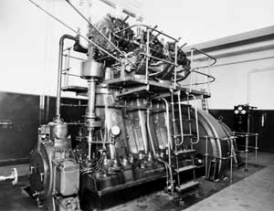 This engine was sold by English Electric under the "Willans" name as this model was first built by "Willans and Robinson Ltd" under license to Rudolf Diesel in 1904.